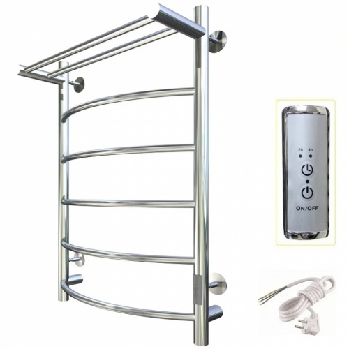Электрический полотенцесушитель Тругор ПЭК 5 П СП 80x40 см с полкой, цвет хром. Используется для просушки влажных вещей и полотенец, а также дополнительного обогрева помещения. Изготовлен из пищевой нержавеющей трубы марки AISI 201, которая отличается стойкостью к высоким температурам и образованию коррозии.