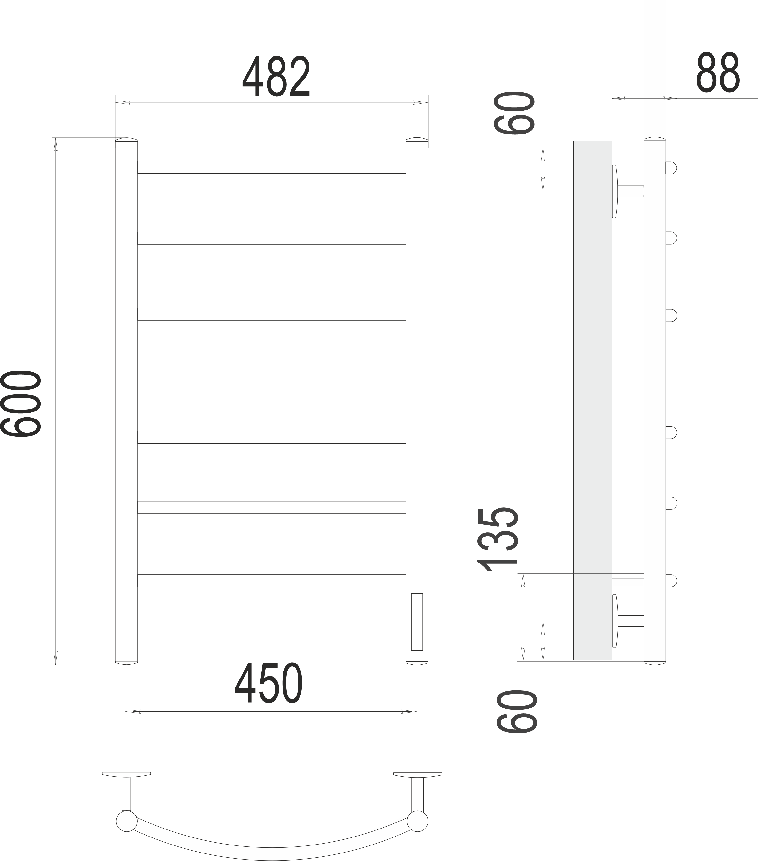Полотенцесушитель Terminus Классик П6 450х600 электро КС 9005 матовый
