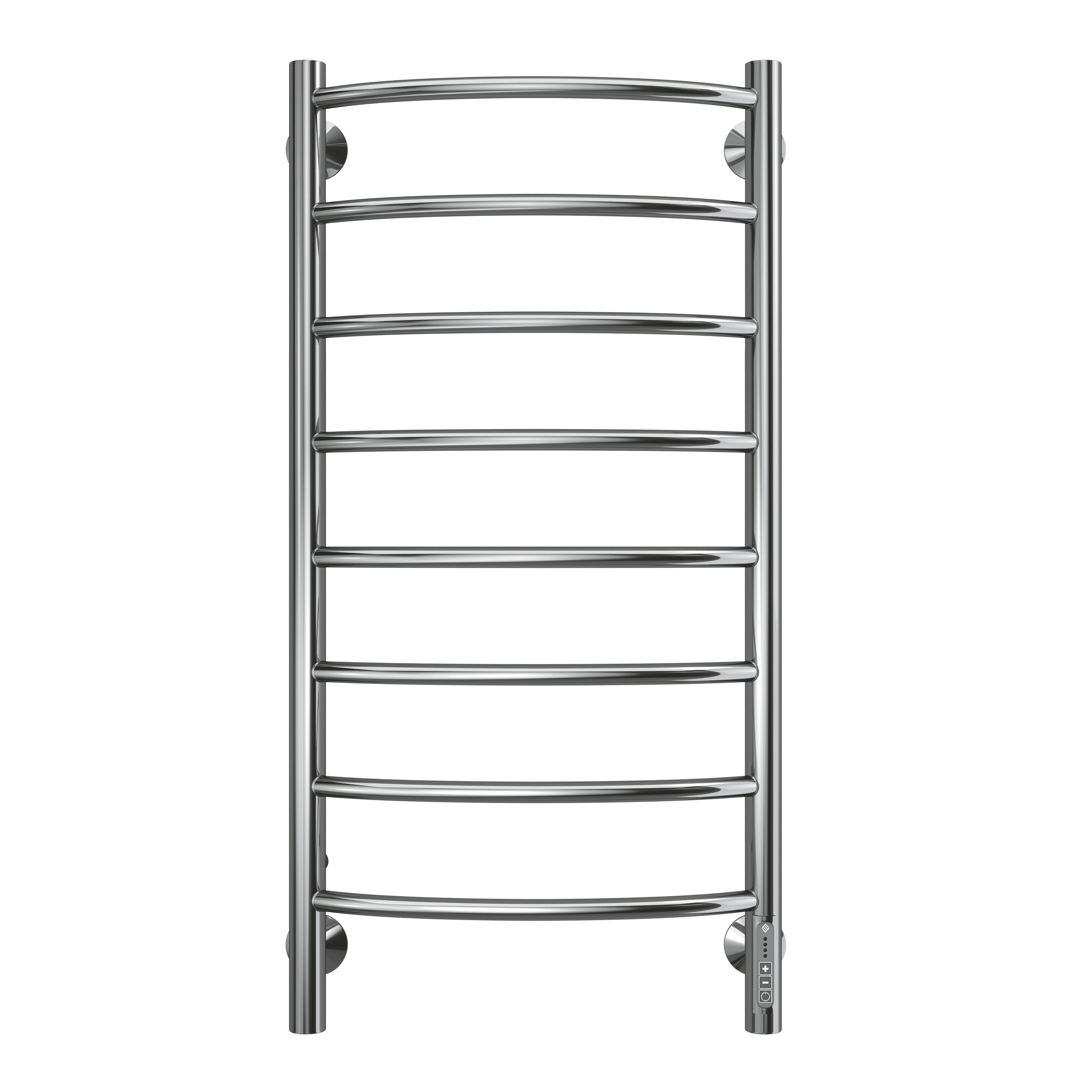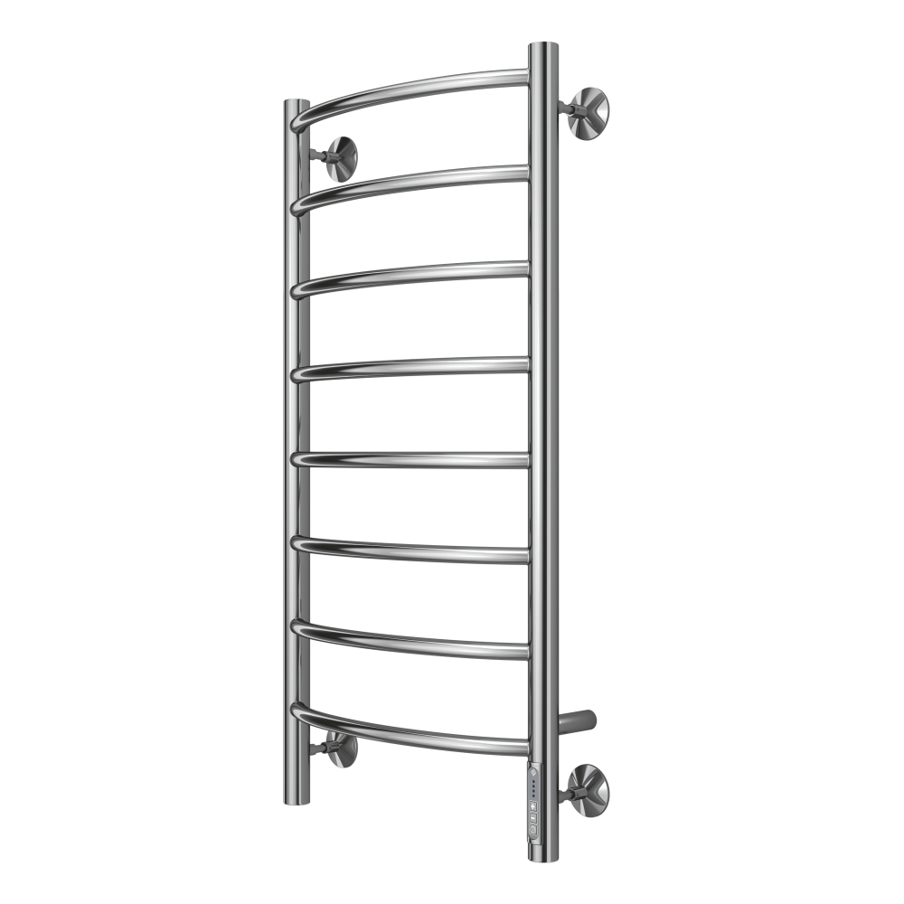 Полотенцесушители серии Классик обладают классической формой лестница с горизонтальными полками выгнутыми под небольшим радиусом вперед. На выступающих полках значительно проще размещать полотенца для их просушивания. Полотенцесушитель выполнен из нержавеющей стали марки AISI 304L. Поверхность обработана с помощью плазменной полировки. Особенности электрического полотенцесушителя: Разница прогрева ребра от центра до края соприкосновения со стойкой может достигать 3-5°С. При включении изделия сразу на самый последний (максимальный) режим, полотенцесушитель нагреется до 55 (+5°С) через 20-30 минут в зависимости от размера изделия. Нагрев изделия в первом (минимальном) положении происходит примерно через 15 минут и составляет 40°С (+3-5°С). Каждое следующее положение переключателя увеличивает температуру изделия на 5-7°С. Нагрев и остывание изделия между переключениями (1-2-3) происходит в течение 5-10 минут между каждым положением, так как металл имеет инерцию. Остывание изделия от максимального до минимального положения занимает от 20 до 25 минут. Максимальная температура изделия составляет 55°С (+5°С)Не рекомендуется постоянно использовать изделие в максимальном режиме, так как температура 65°С может привести к ожогу при соприкосновении с изделием. В связи с этим ограничьте доступ детей к работающему на максимальной мощности полотенцесушителю. Используйте максимальный режим только для кратковременной и быстрой просушки мокрых изделий, так как электрический полотенцесушитель не является обогревательным прибором. Работа изделия на максимальном режиме уменьшает срок службы. Технические характеристики: Тип: электрический, без теплоносителя. Тип подключения: вилка или скрытое подключение. Размер (ширина х высота): 432 х 850 мм. Количество перекладин: 8, равноудаленных Основная труба: круглая диаметром 32 мм. Дополнительная труба перекладин: круглая 18 мм. Напряжение: 220 В. Температура нагрева: от 40 до 55 градусов . Индикация: Светодиодный индикатор питания от сети. Время нагрева: 15 минут. Страна: Россия. Производитель: Terminus. Фирменная гарантия: 5 лет. Комплект поставки: Полотенцесушитель электрический – 1 шт. Телескопическое крепление к стене: х 4 шт. Для моделей типа «Лесенка» модуль скрытого подключения со съемной кабель-вилкой - 1шт. Паспорт - 1 шт. Упаковка - 1 шт. В нашем интернет-магазине можно купить электрический полотенцесушитель для ванной в форме лестницы Классик на 8 полок производства Terminus (Терминус), Россия, с доставкой курьером в г. Екатеринбург, либо транспортной компанией по всей территории РФ. При заказе от 5000,00 рублей доставка по городу Екатеринбургу бесплатно.