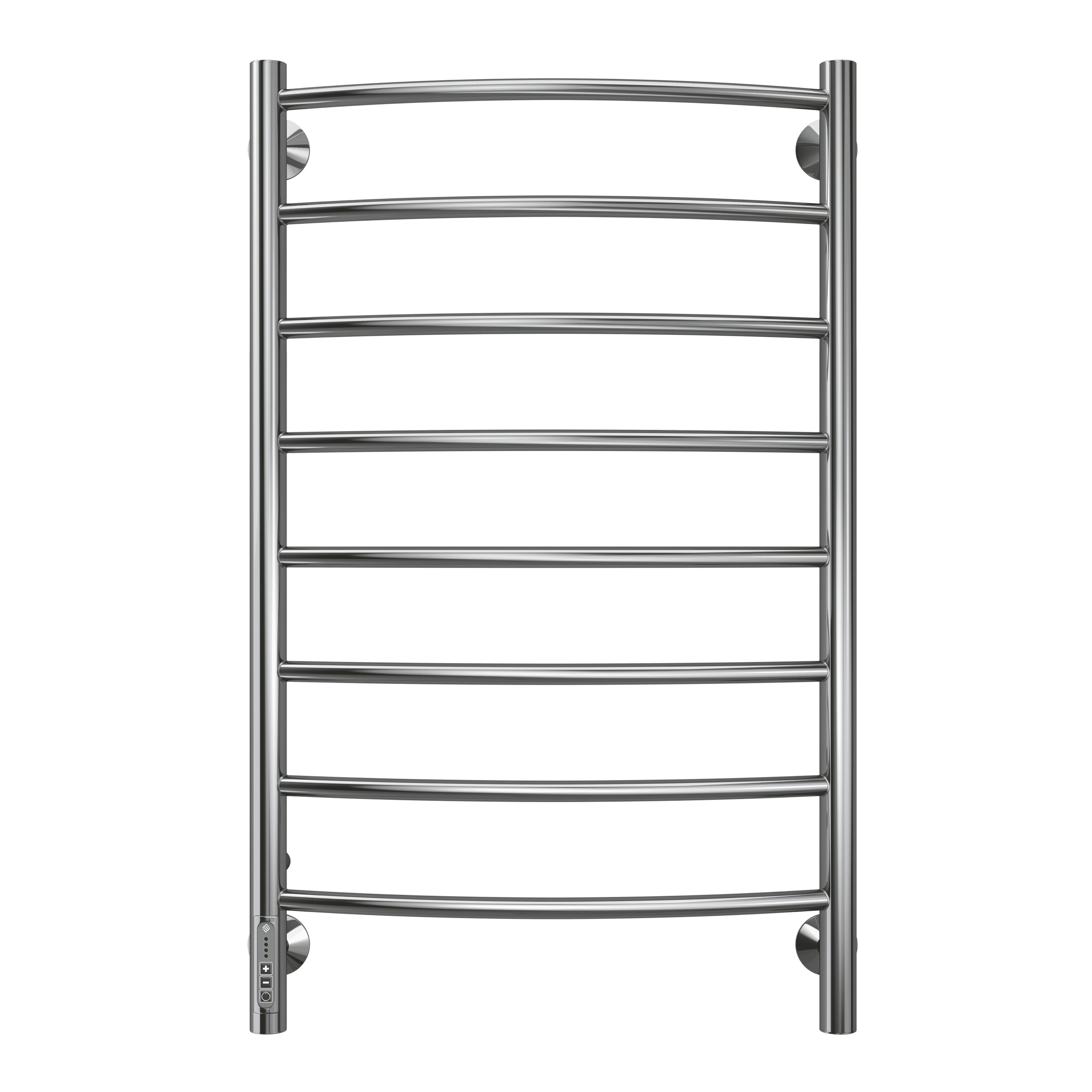 Характеристики<br>Тип: электрический<br><br>Тип нагревателя: ТЭН<br><br>Мощность: 120 Вт<br><br>Подключение: вилка/скрытая проводка<br><br>Направление подключения: нижнее левое<br><br>Количество перемычек: 8 шт<br><br>Цвет: хром<br><br>Терморегулятор: в комплекте<br><br>Таймер: нет<br><br>Заполнен маслом: нет<br><br>Наличие полки: нет<br><br>Ширина: 532 мм<br><br>Высота: 850 мм<br><br>Глубина: 88 мм<br><br>Материал: нержавеющая сталь<br><br>Вес нетто: 4 кг<br><br>Форма: лесенка<br><br>Палитра: серый<br><br>Межосевое расстояние: 500 мм<br><br>Покрытие: хромовое<br><br>Площадь обогрева: 2 м²<br>Комплектация<br>Полотенцесушитель.<br><br>Телескопическое крепление.<br><br>Модуль скрытого подключения.<br><br>Съемный кабель.<br>