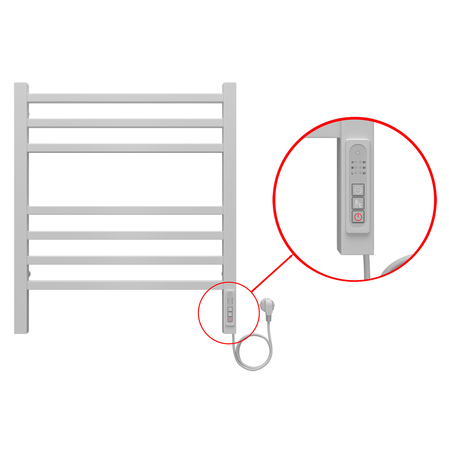 Полотенцесушитель электрический AZARIO ANCONA 500/600 квадрат, 7 секций, диммер справа, белый (AZ71856W)