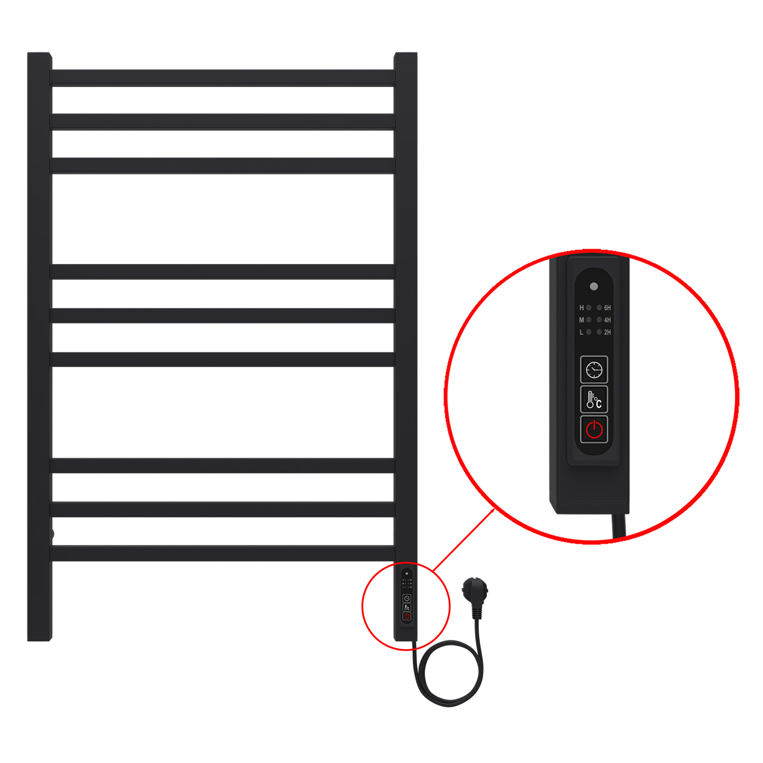 Полотенцесушитель электрический AZARIO ANCONA 500/800 квадрат, 9 секций, диммер справа, черный (AZ71858B)