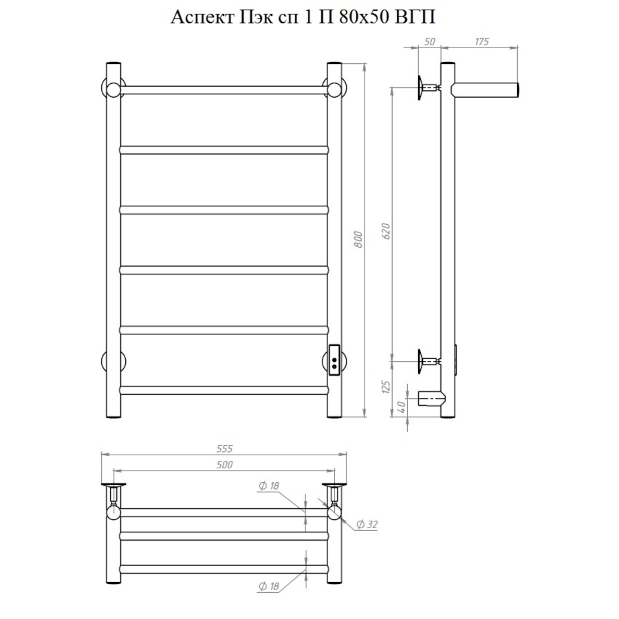Полотенцесушитель Аспект Пэк сп 1 П 80х50 белый ВГП