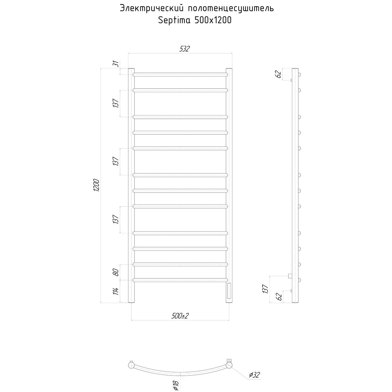 Полотенцесушитель Ravak Septima, электрический, нержавеющая сталь, 50см х 120см
