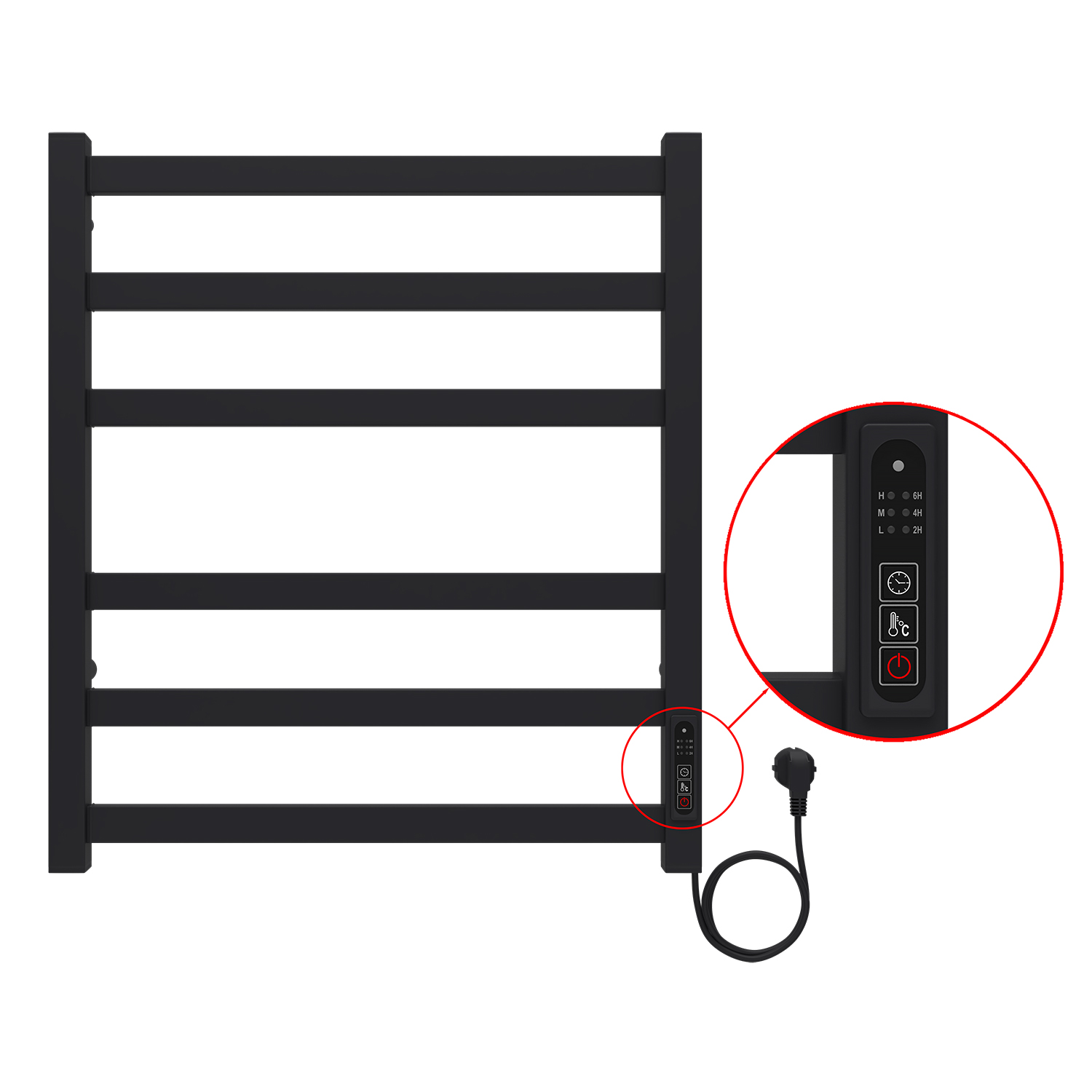 Полотенцесушитель электрический AZARIO PALERMO 500/600 квадрат, 6 секций, диммер справа, черный (AZ83856B)