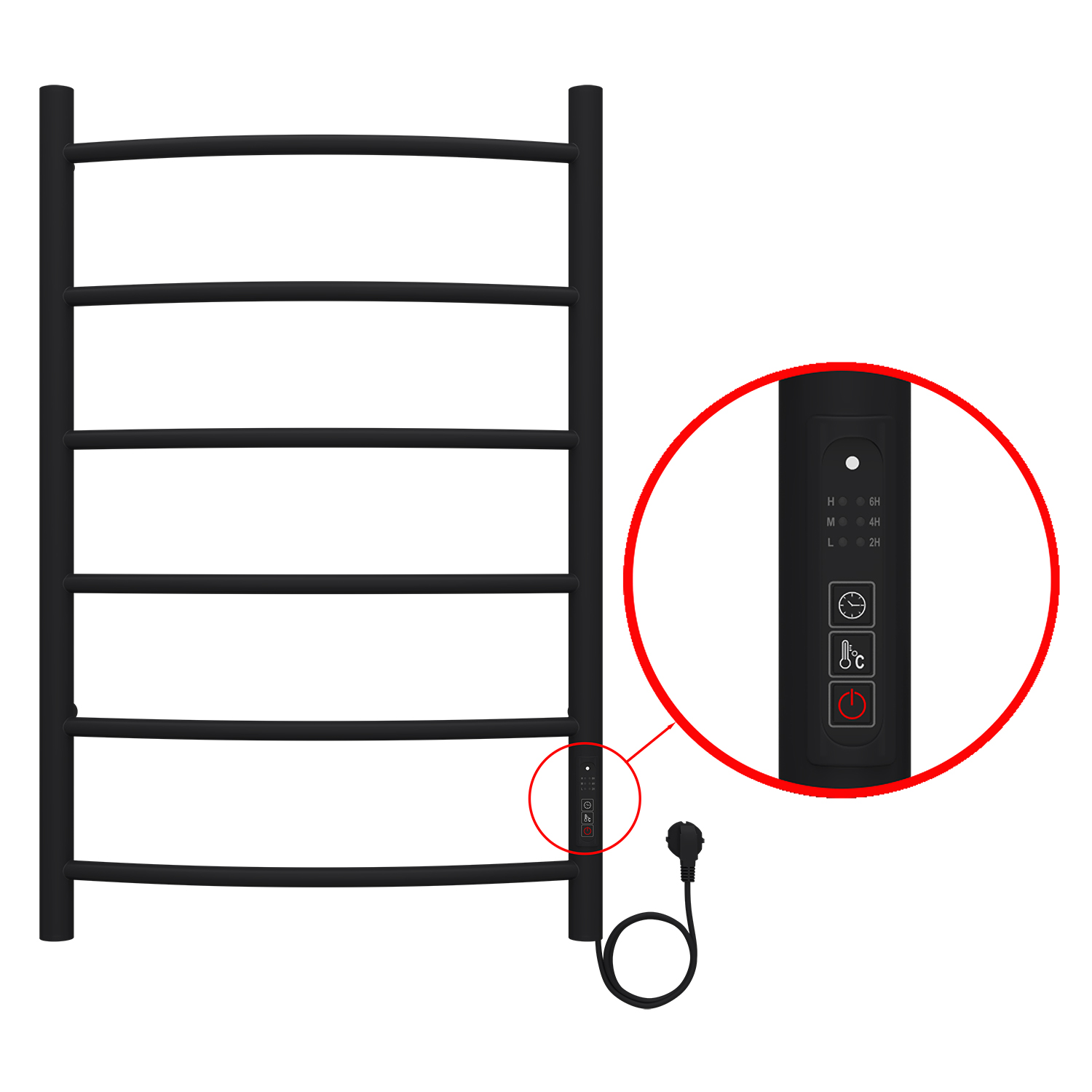 Полотенцесушитель электрический AZARIO VERONA 500/800 6 секций, диммер справа, черный (AZ04858B)