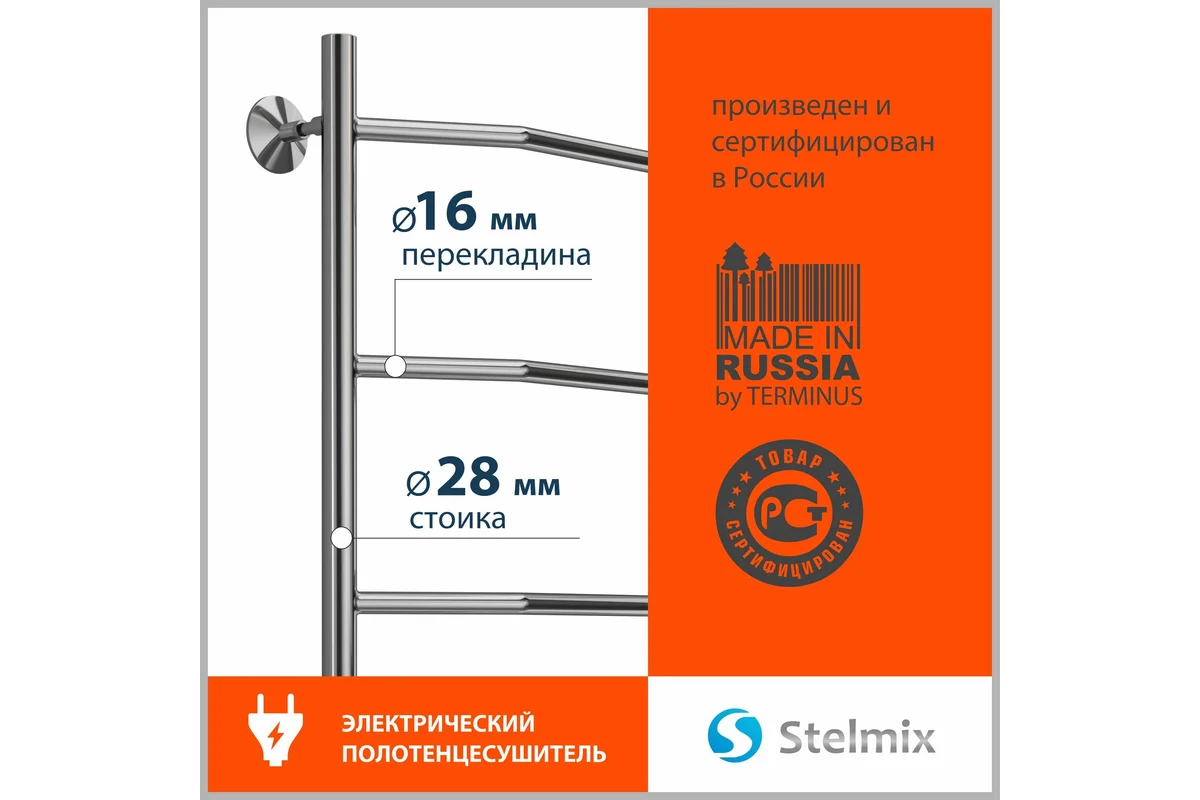 Линейка полотенцесушителей от завода TERMINUS Полотенцесушитель электрический STELMIX (Стелмикс) Трапеция П5 50х80 см - идеальное дополнение к интерьеру ванной комнаты.