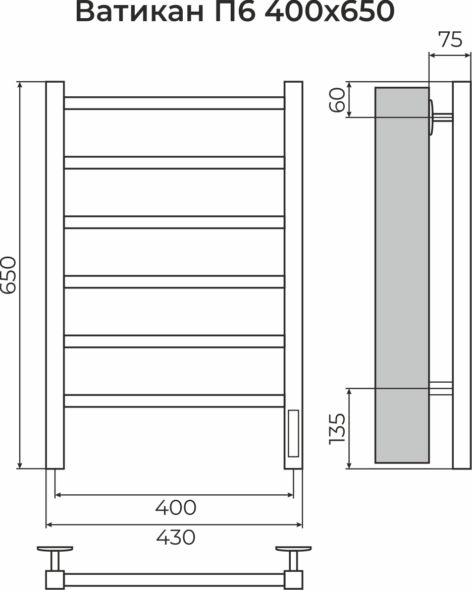 Ватикан П6 400х650 Электро (quick touch) Полотенцесушитель TERMINUS