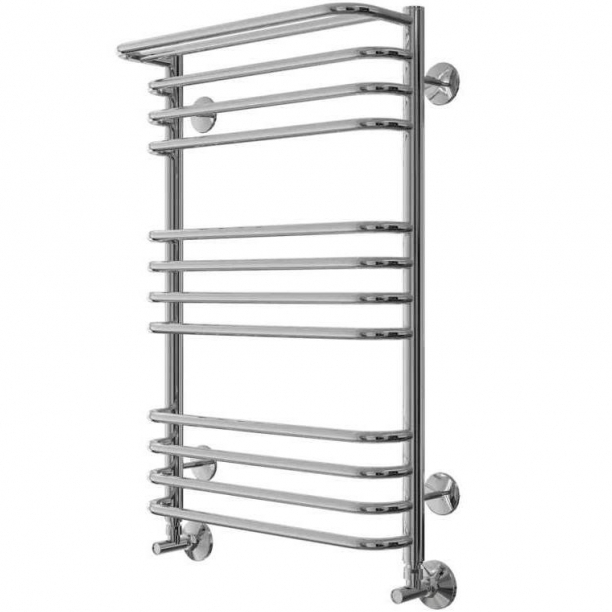Водяной полотенцесушитель Ravak Optima 53х80 X04000083685 с нижним подключением и полкой, с 13 перекладинами изготовлен из нержавеющая стали.