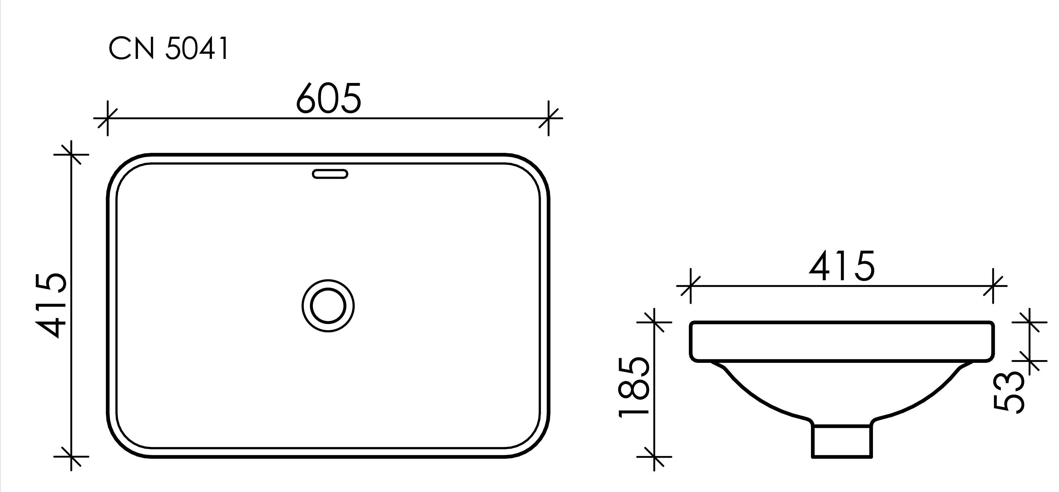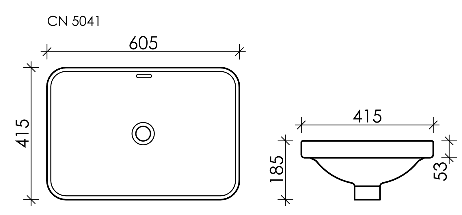 CN5041 Умывальник прямоугольный встраиваемый сверху в столешницу Element 605*415*185мм