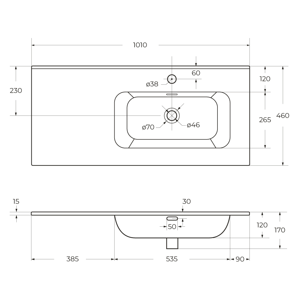 Керамическая раковина, чаша справа, CEZARES CZR-8095-100-R