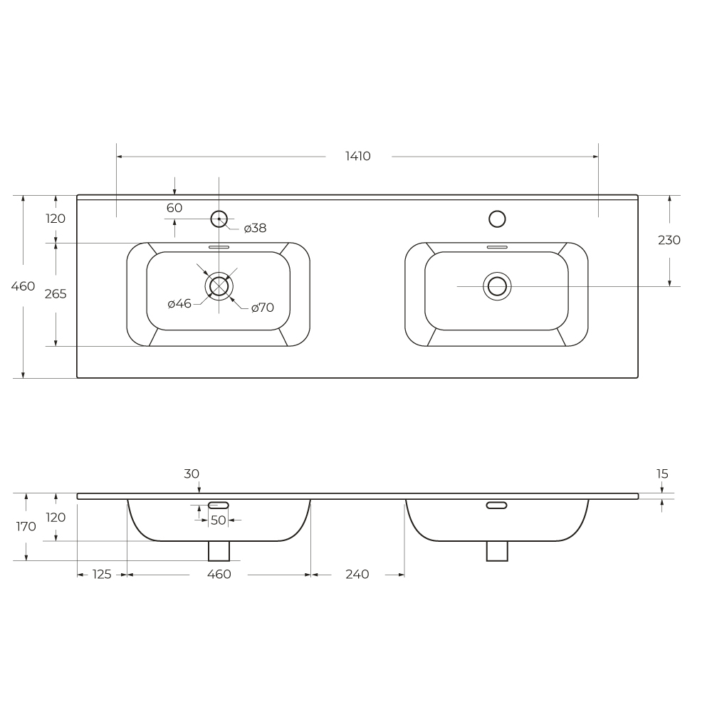 Керамическая раковина с двумя чашами CEZARES CZR-8095-140-2