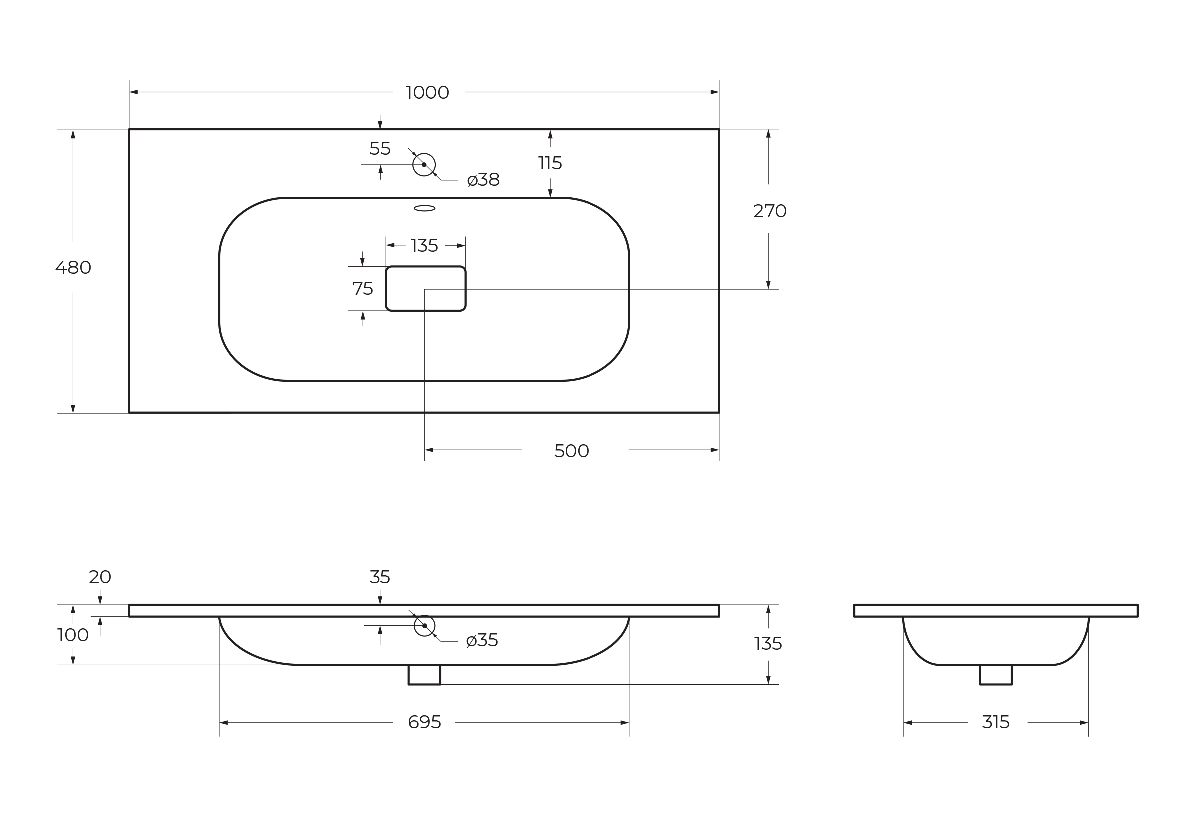 Раковина CEZARES CZR-1000/480-LV-MR-NV