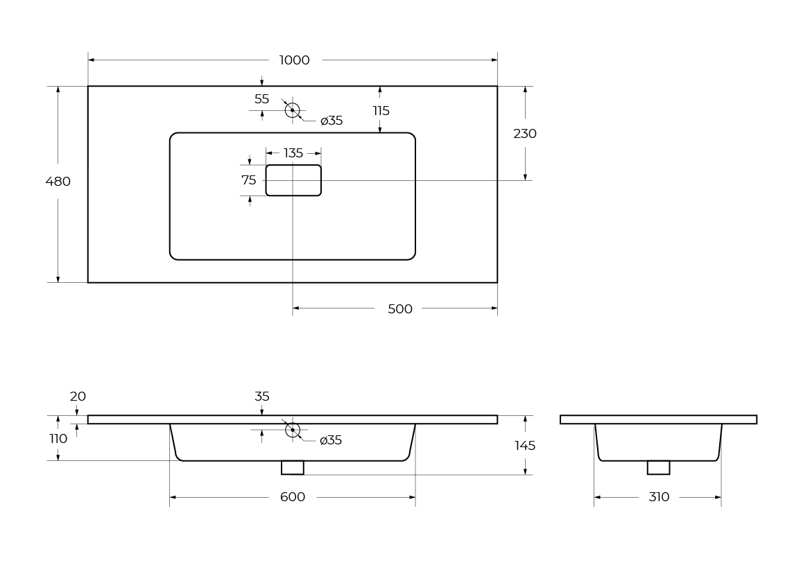 Раковина CEZARES CZR-1000/480-LV-MR-PRS