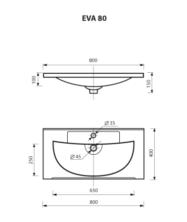 Умывальник мебельный "EVVA - 80" D М