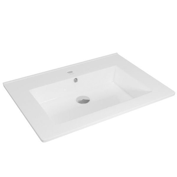 Прямоугольная мебельная раковина "Оскар" устанавливается на мебель, имеет отверстие для смесителя и систему перелива с декоративным кольцом
