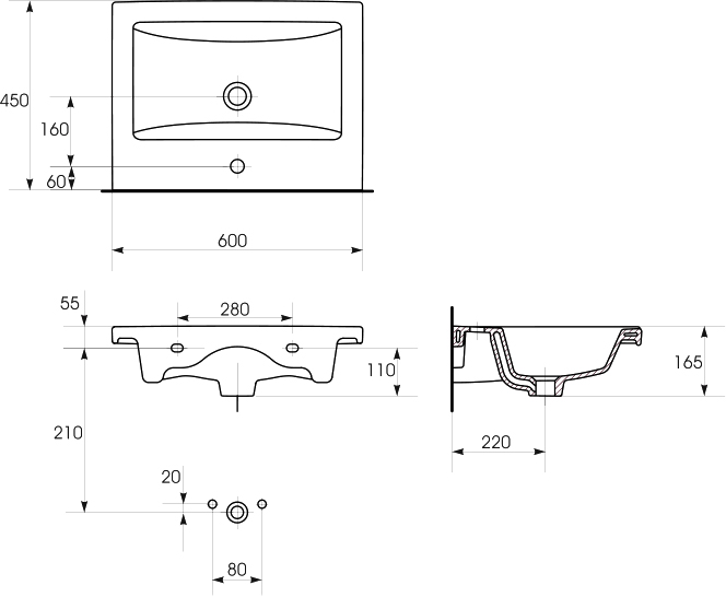 Раковина встраиваемая Style Line Сomo 60 ЛС-00000155 белая ширина 60 см.