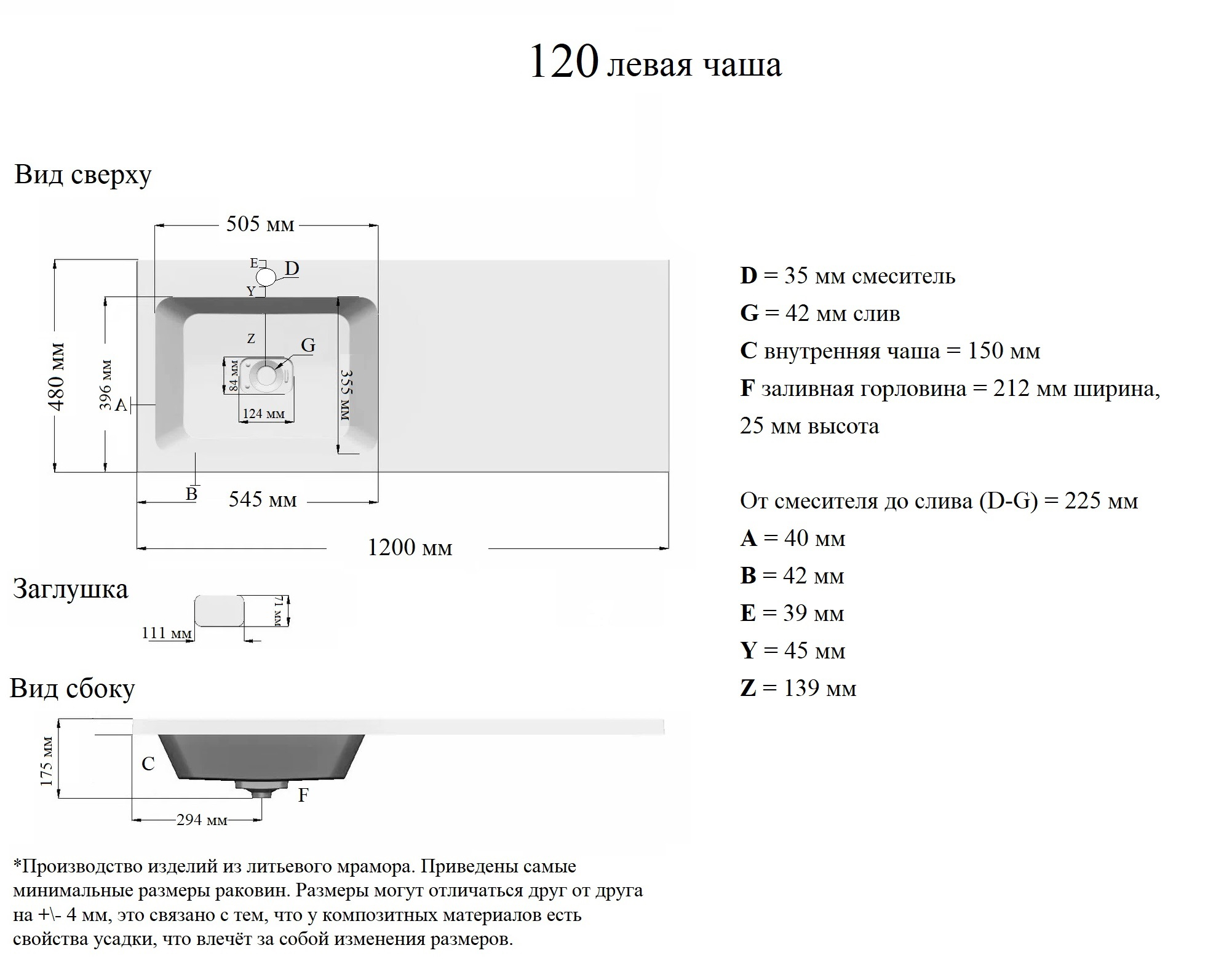 Раковина Orange ST-120RAL 120 левая для тумбы STD-60TUW. Материал - искусственный камень. Раковина с одним отверстием под смеситель. В комплекте кронштейн для крепления крыла раковины.