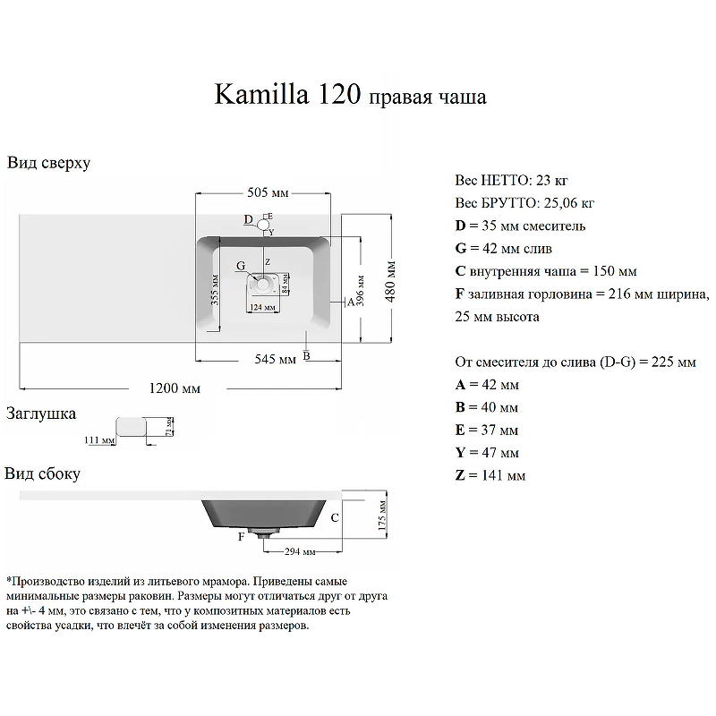 - Материал: литьевой мрамор.