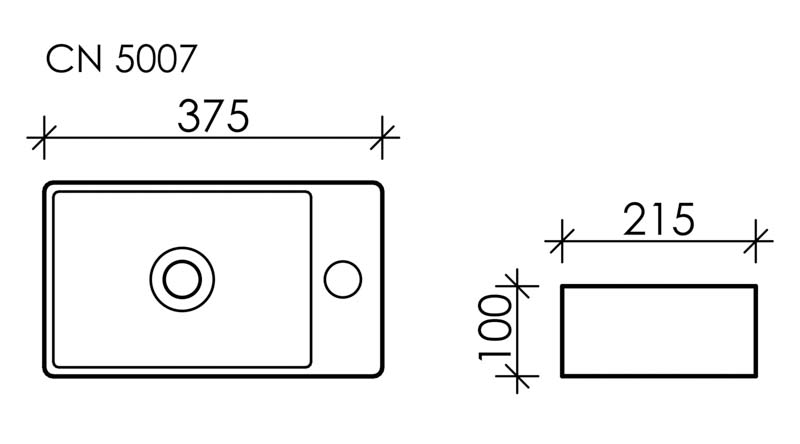 CN5007 Умывальник подвесной/накладной прямоугольный (отв под смеситель R) Element 375*215*100мм