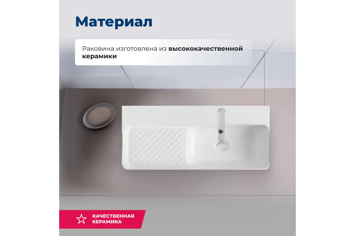 Раковина керамическая подвесная 700x305x130 с отв.под смеситель, белый (326054) Материал: сантехническая керамика, покрытая грязеотталкивающей эмалью
