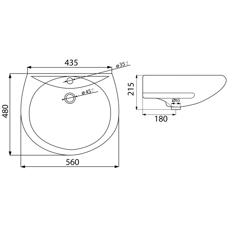Раковина подвесная Оптима Лобненский стройфарфор 50х55х20 с переливом, белая (10/1/5/1-63)