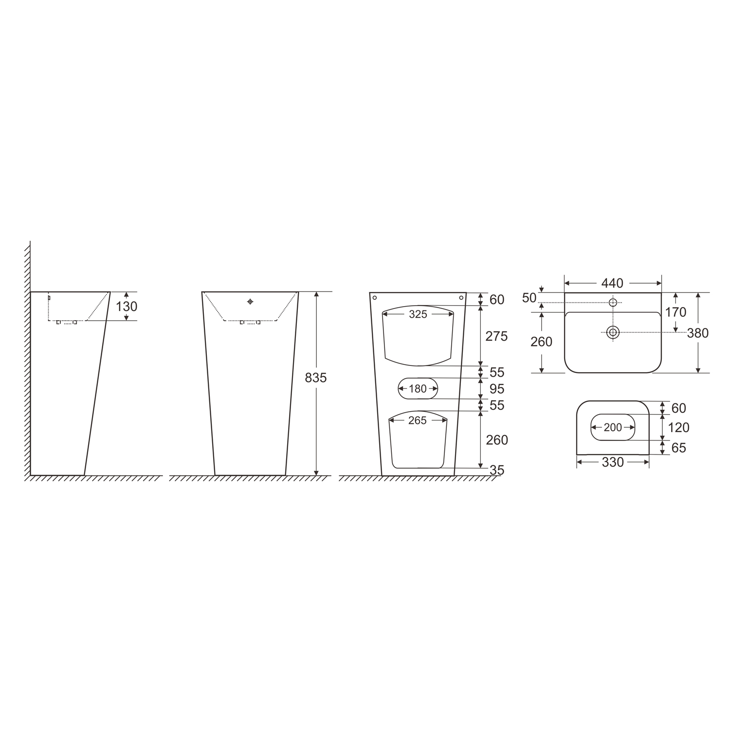 Раковина напольная Azario FRETTA SQUARE 38х44х83.5 Белый (AZ-302)