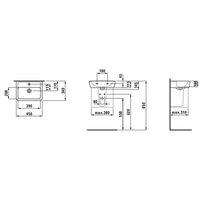 Раковина Laufen Pro A шириной 45 см. Артикул: 8.1195.1.000.104.1.