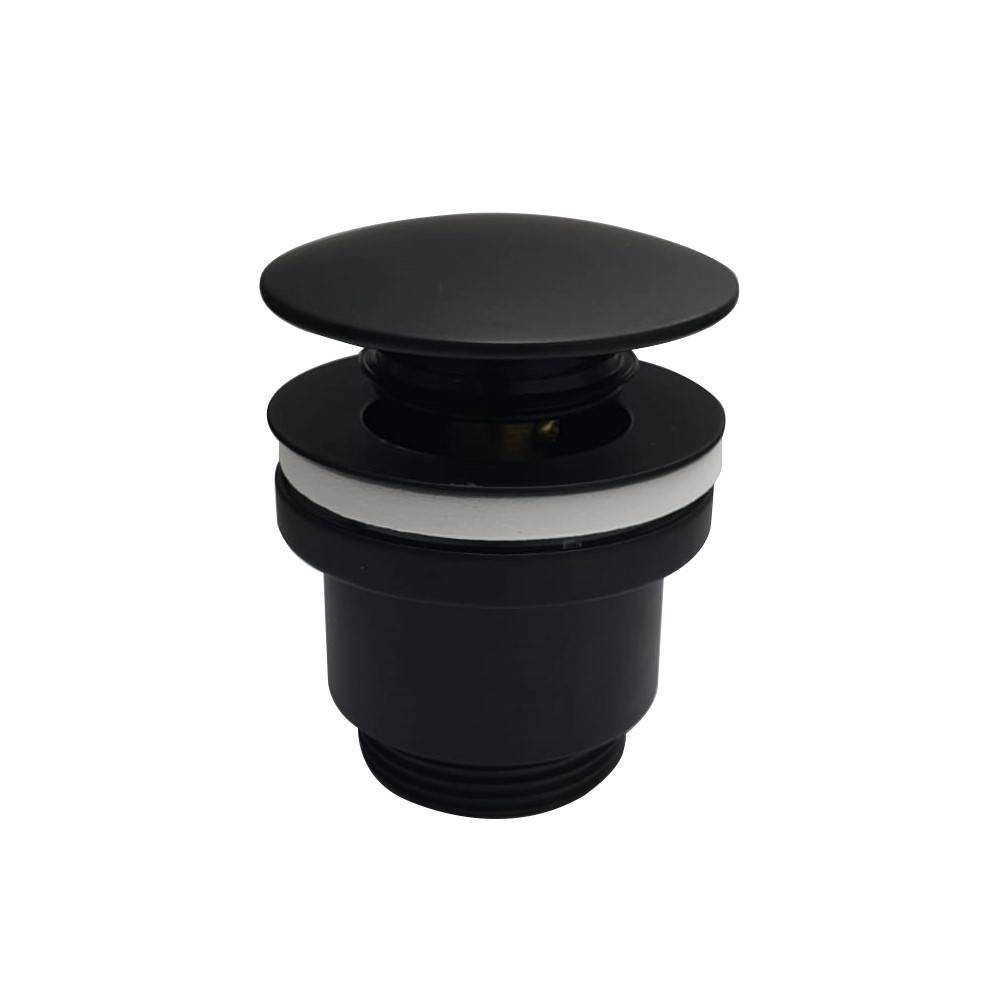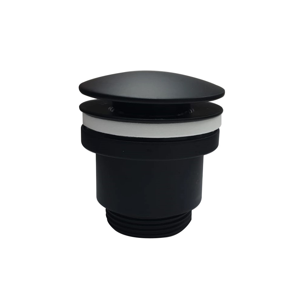 Донный клапан Haiba HB64-7. Данная модель имеет металлический корпус. Крышка черного цвета, выполнена из нержавеющей стали. Силиконовые прокладки обеспечивают плотное прилегание донного клапана к посадочному месту раковины. Без перелива.