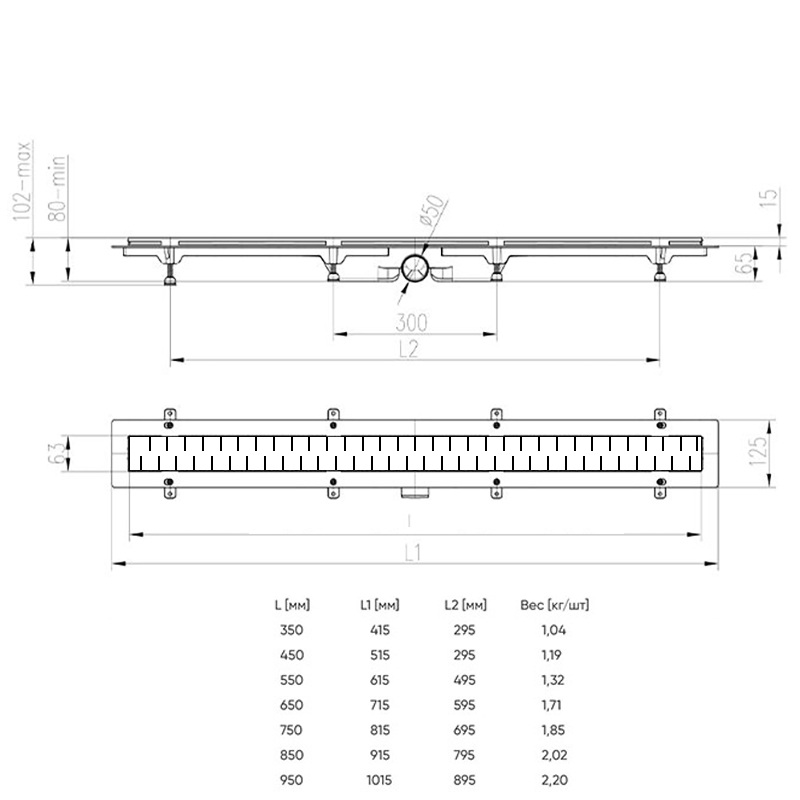 Душевой лоток AZARIO D50 Medium 750 мм, боковой слив, пластиковый, перфорированная решетка, черный (AZ-CH 750/50 MC)