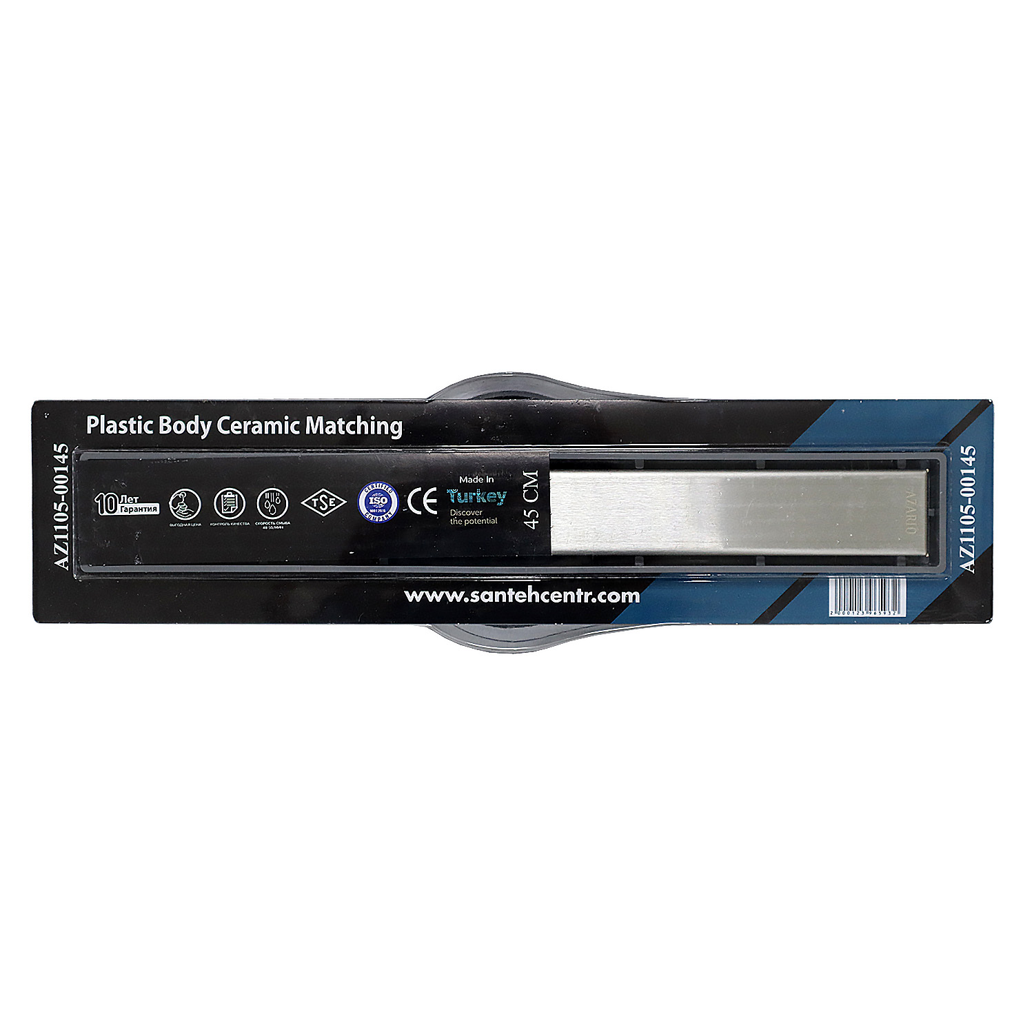 Душевой лоток AZARIO 450 мм с решеткой под плитку (двухсторонняя решетка), выход 50мм, хром матовый (AZ1105-00145)