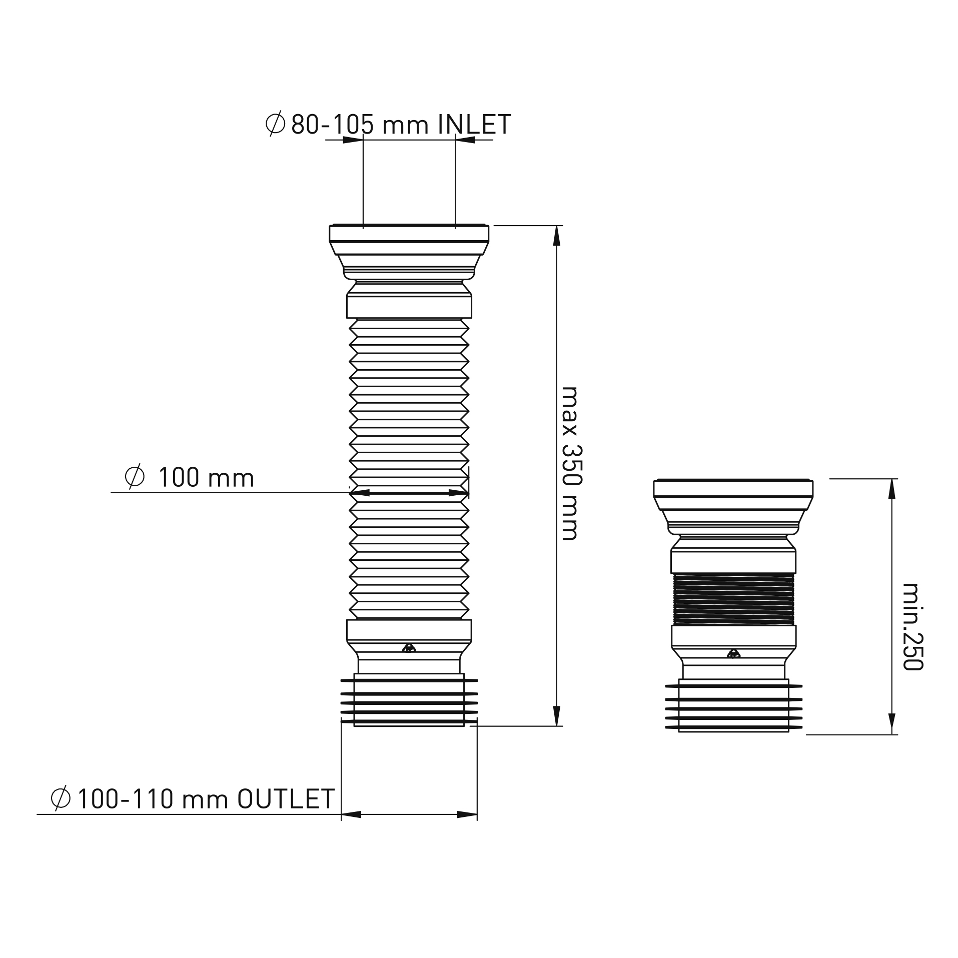 Гофрированная труба для унитаза BathMaster Ø110 350мм