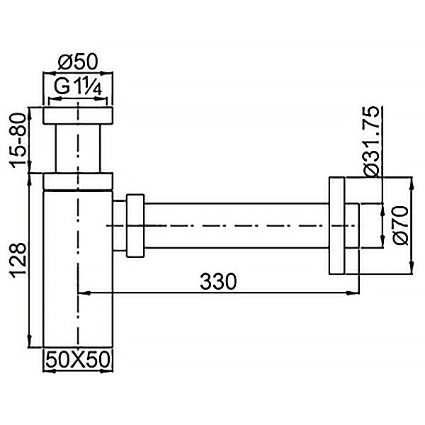 Сифон для раковины AZARIO G 1 1/4, без выпуска, квадрат, латунь, черный (AZ-109-BL)