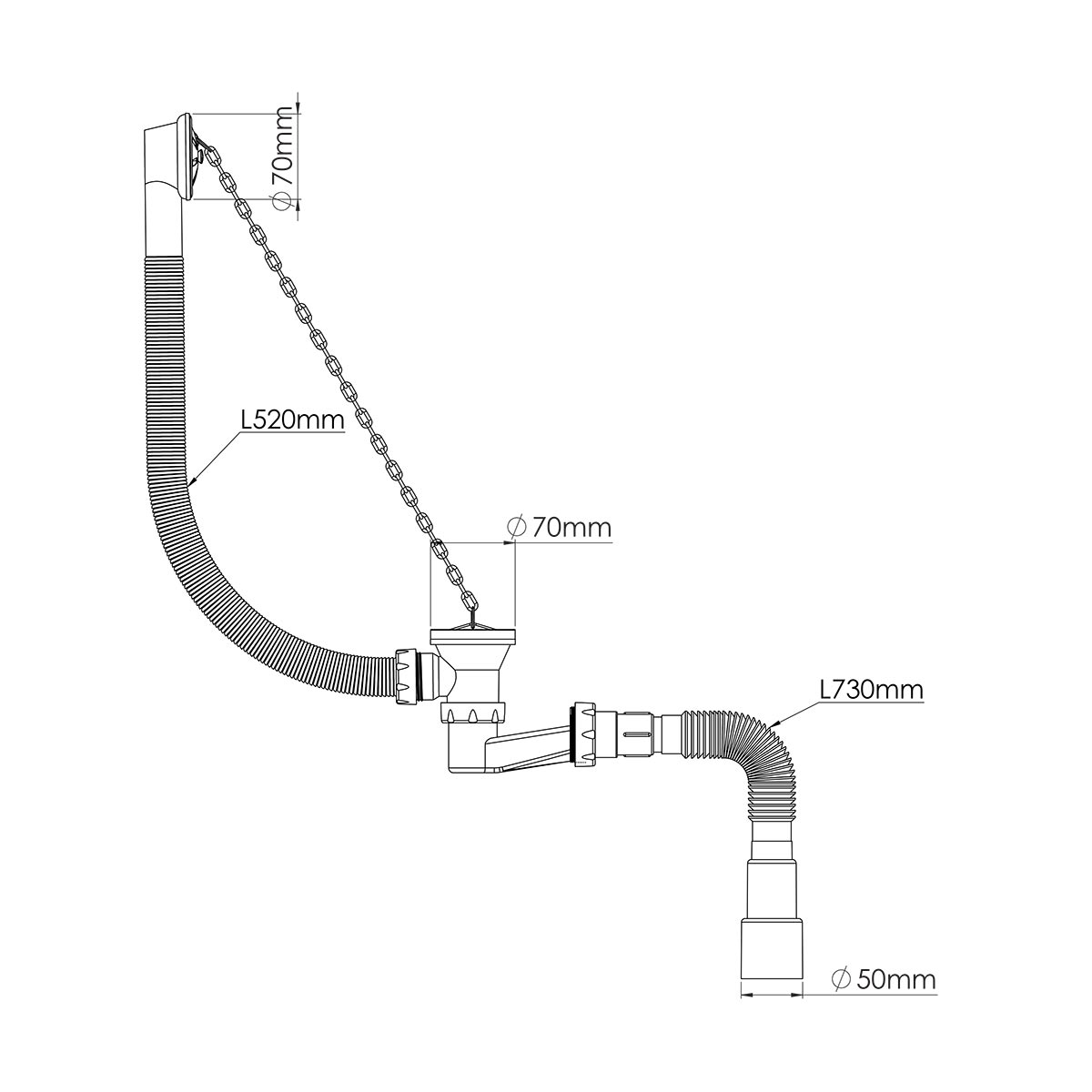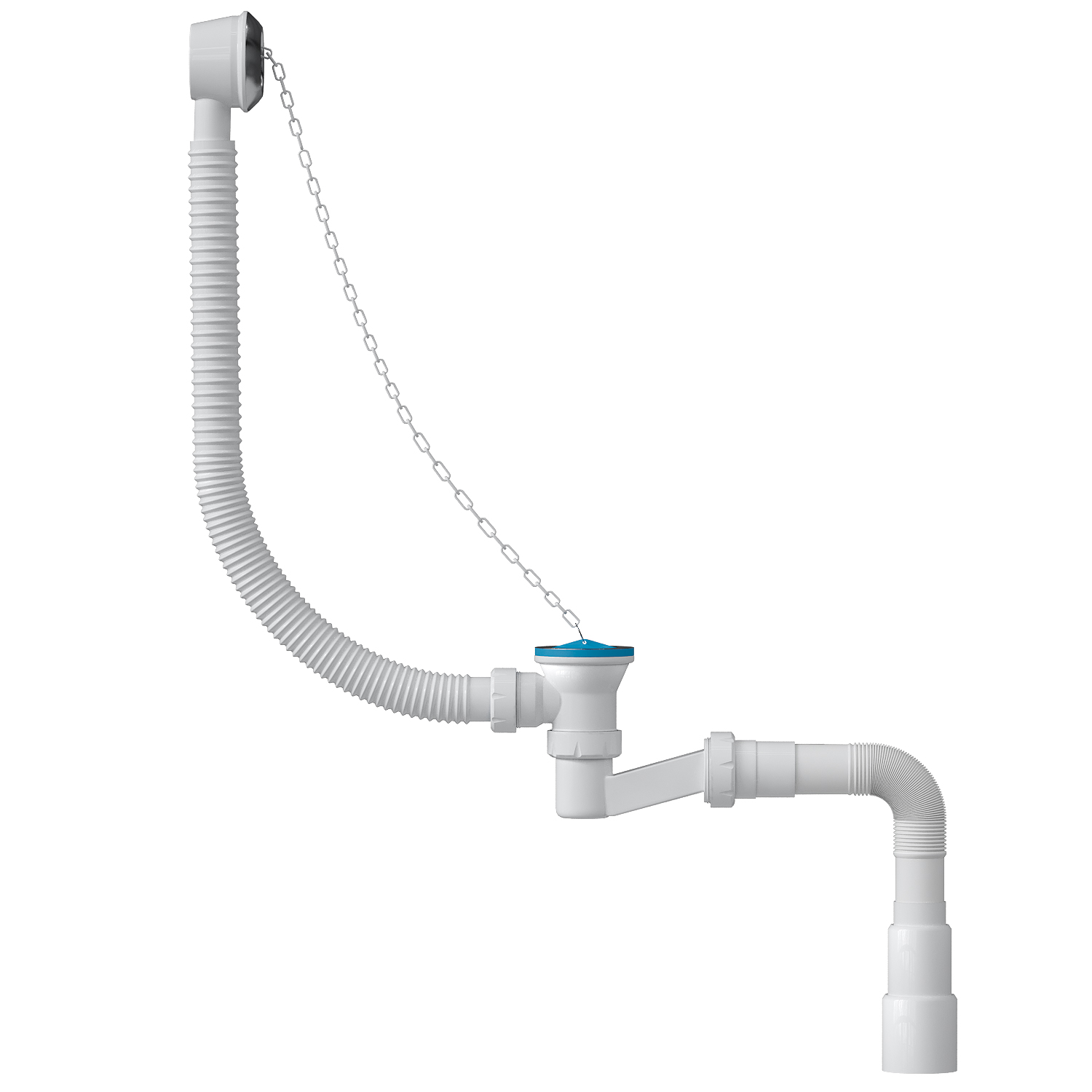 Сифон для ванн BathMaster с переливом, цепочкой, пробкой и гибкой трубой (1 1/2"- Ø40/50)