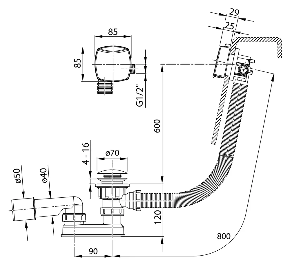 Слив-перелив Ravak 800 X01505 с механизмом click-clack с наливом.