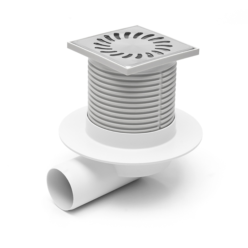 Душевой трап AZARIO D50 пластиковый, боковой слив, с решеткой SUN 10х10см (AZ-411 L)