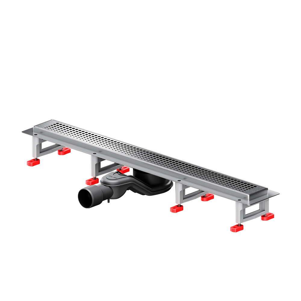 Продукт обладает низкой высотой монтажа и возможностью регулировки, что предполагает экономию бюджета при заливке пола. Нержавеющая сталь со специальным антикоррозийным защитным покрытием, нанесенная методом кислотной пассивации. Выход разработан на два диаметра: 40 и 50 мм, которые выбираются в процессе монтажа.