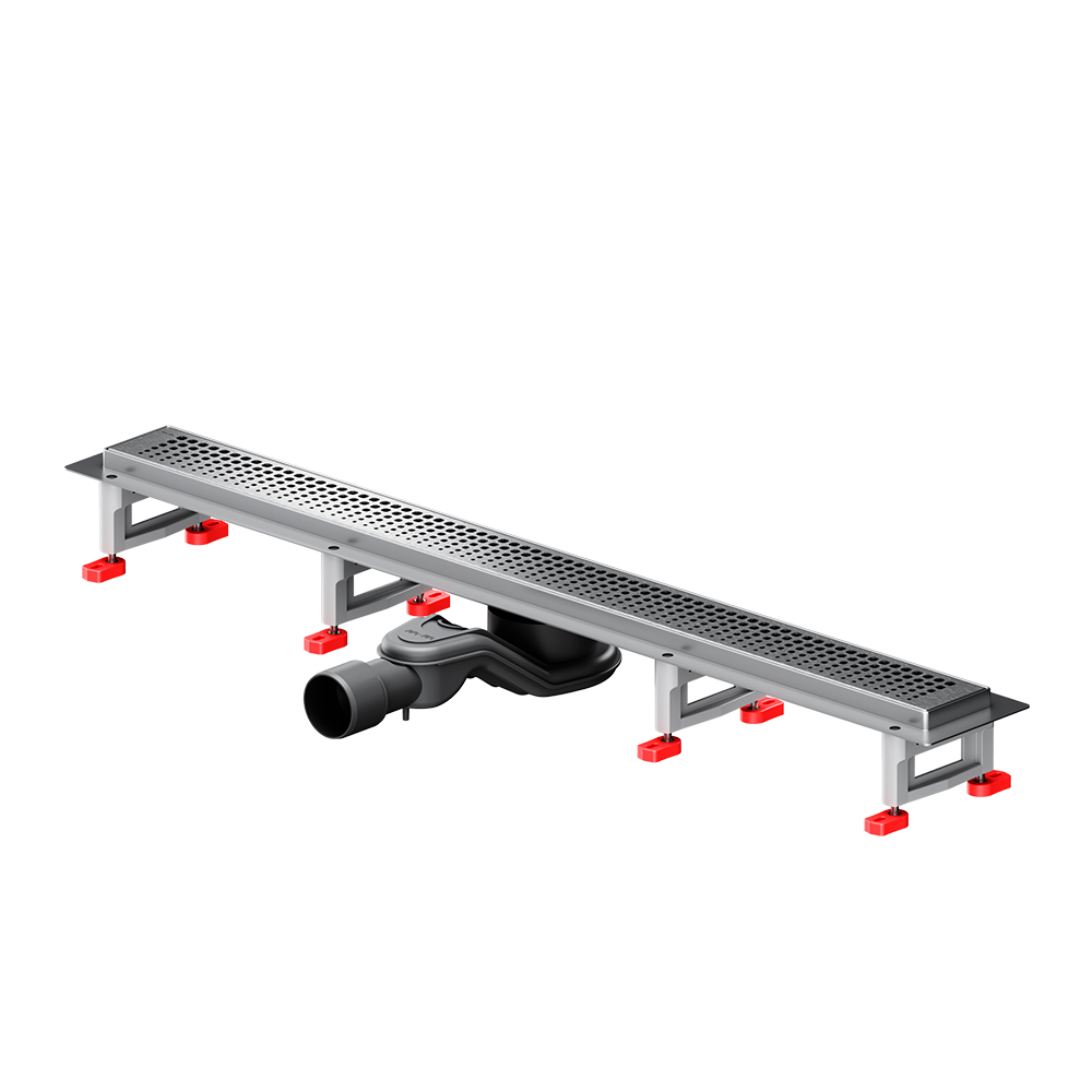Продукт обладает низкой высотой монтажа и возможностью регулировки, что предполагает экономию бюджета при заливке пола. Нержавеющая сталь со специальным антикоррозийным защитным покрытием, нанесенная методом кислотной пассивации. Выход разработан на два диаметра: 40 и 50 мм, которые выбираются в процессе монтажа.