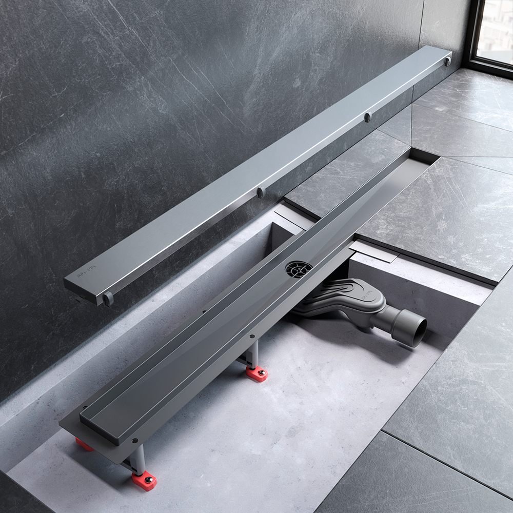 Продукт обладает низкой высотой монтажа и возможностью регулировки, что предполагает экономию бюджета при заливке пола. Нержавеющая сталь со специальным антикоррозийным защитным покрытием, нанесенная методом кислотной пассивации. Выход разработан на два диаметра: 40 и 50 мм, которые выбираются в процессе монтажа.