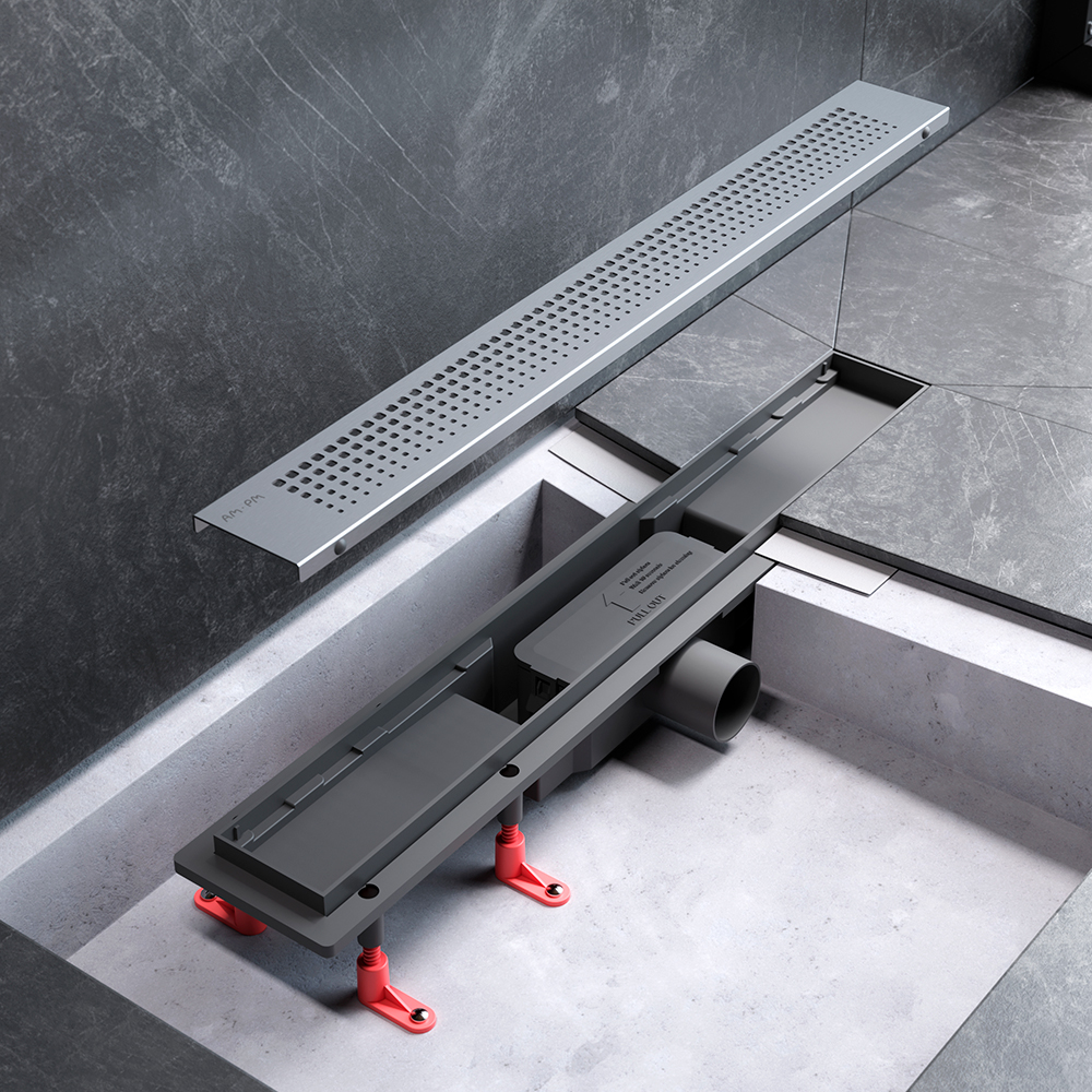 Продукт обладает низкой высотой монтажа и возможностью регулировки, что предполагает экономию бюджета при заливке пола. Трап имеет инновационную конструкцию решетки с фильтром, что значительно увеличивает межсервисный интервал.