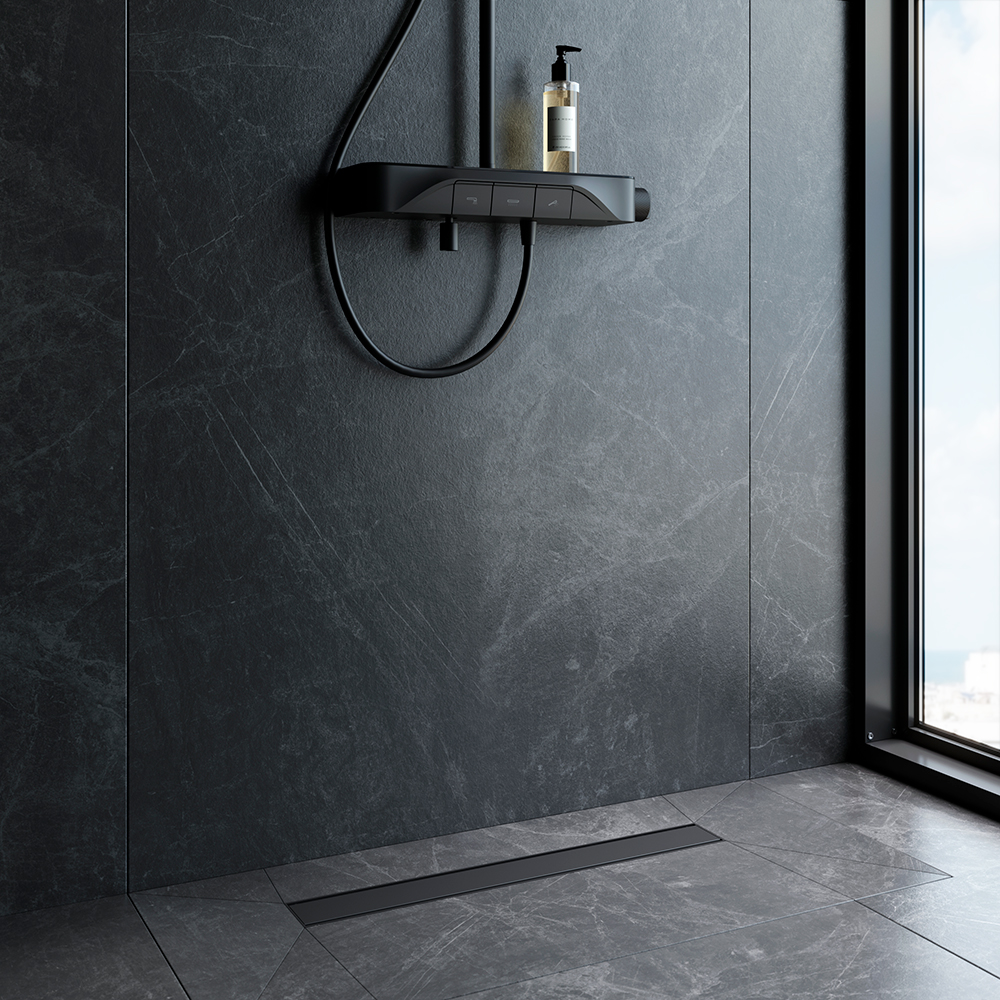 W02SC-U11-060-04BM PrimeFlow Трап для душа линейный универс затвор Tile 60см цвет черн мат
