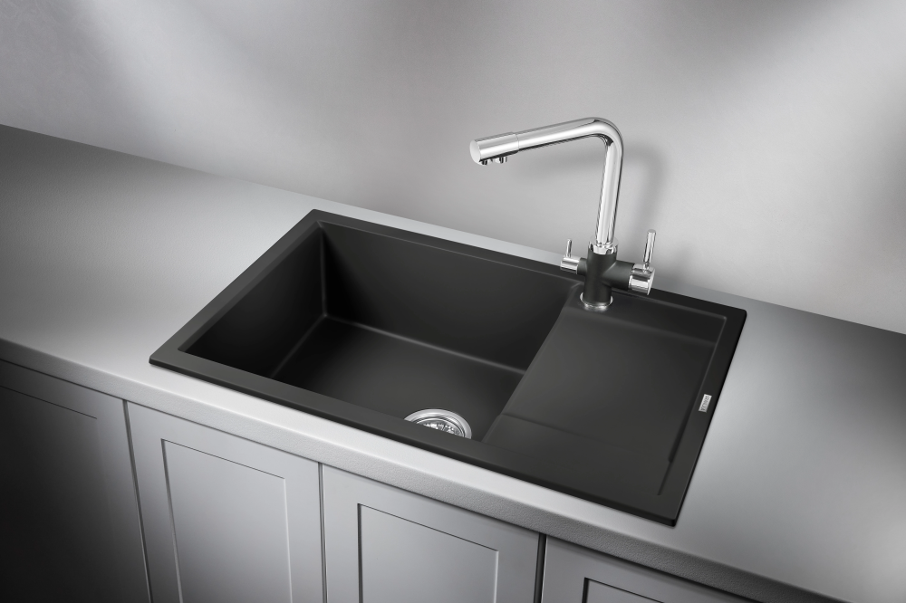 Кухонная мойка Lemark RAMZA 760 врезная прямоугольная с доп.чашей и крылом из кварцгранита цвет: Антрацит (9910037)