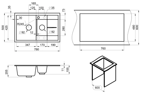 Эргономичная мойка, традиционной прямоугольной формы, с основной и дополнительной малой чашей. Удачное сочетание рационально спроектированных двух чаш и крыла, обеспечит идеальную рабочую атмосферу на кухне. Модель представлена в 10-и цветах.