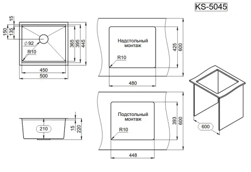 Кухонная мойка GRANULA Kitchen Space (5045U, СТАЛЬ МАТОВАЯ)