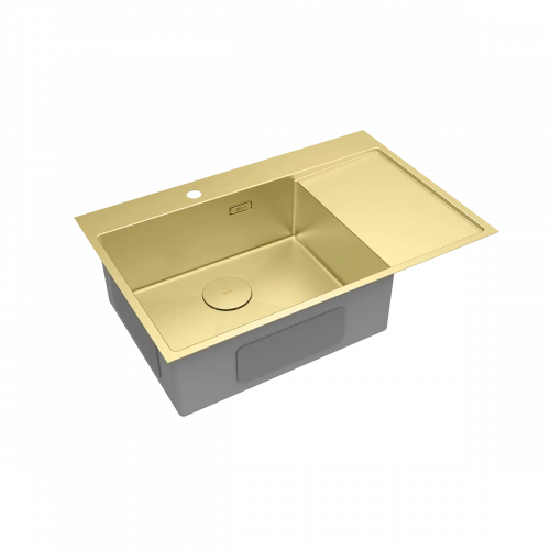 Кухонная мойка Lemark KEZADRA 780L прямоугольная с крылом из нержавеющей стали (чаша СЛЕВА) цвет: светлое золото (9938150)