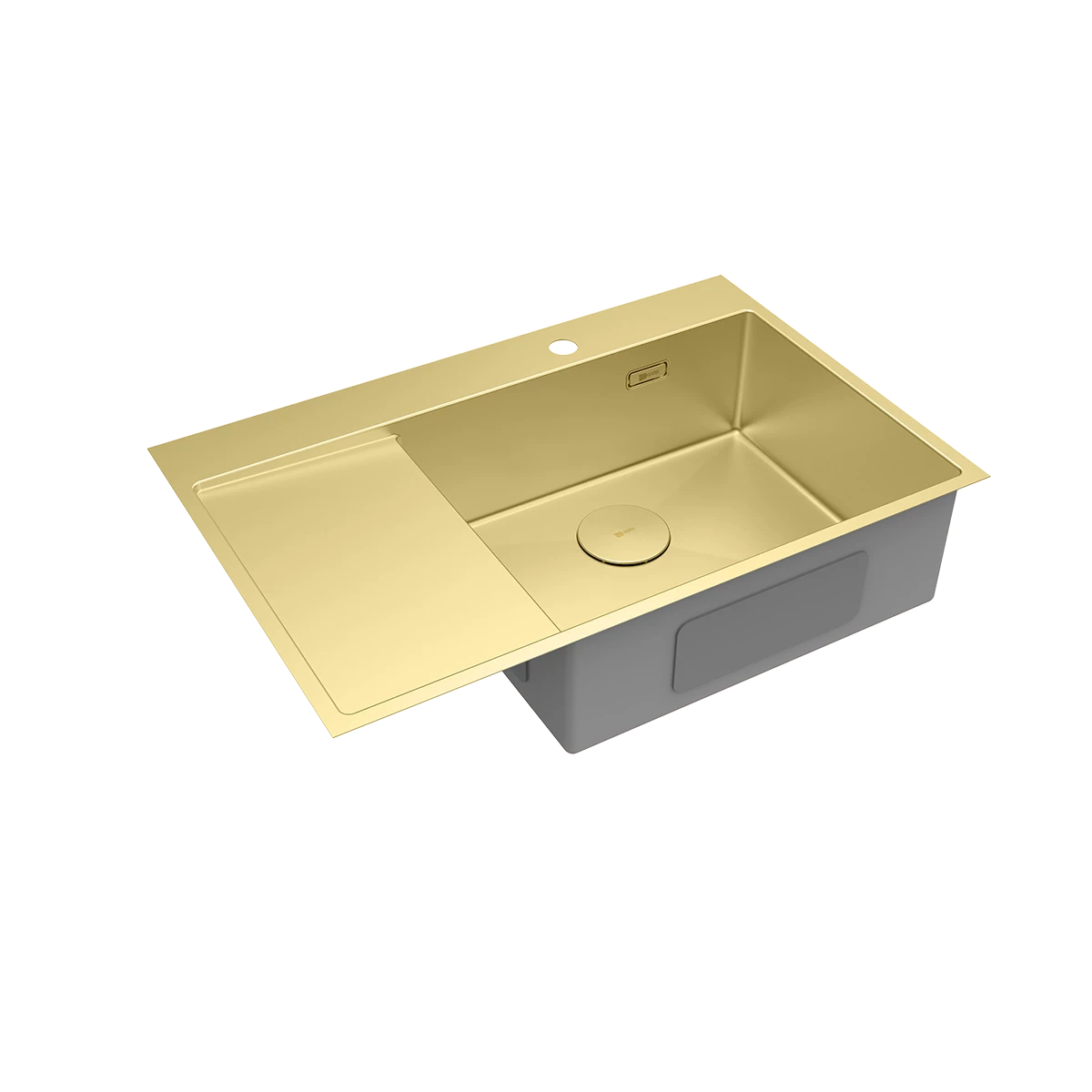 Кухонная мойка Lemark KEZADRA 780P прямоугольная с крылом из нержавеющей стали (чаша СПРАВА) цвет: светлое золото (9938154)