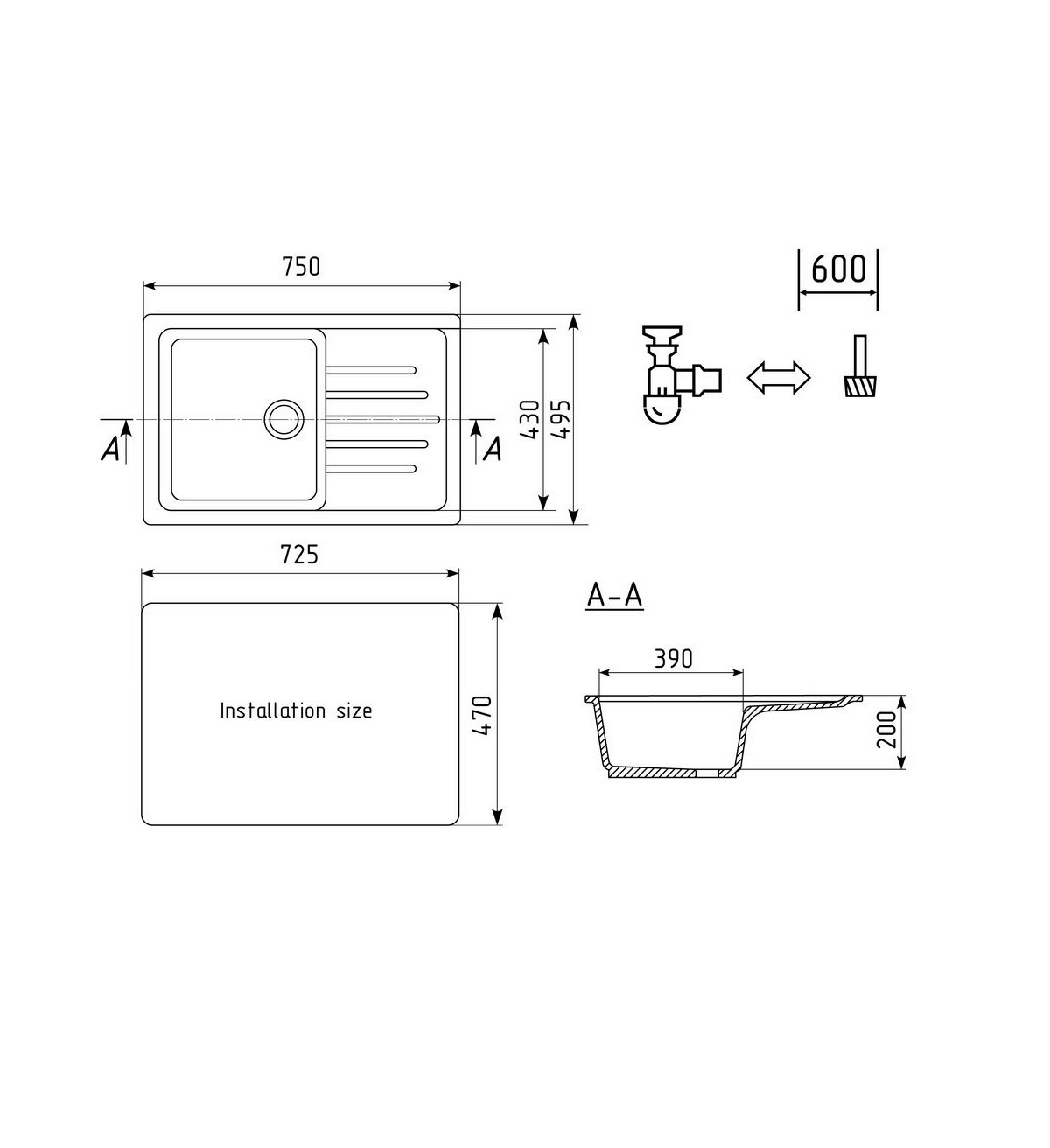 ULGRAN U-400 - односекционная классическая реверсивная кухонная мойка, с вместительной чашей. Данная мойка устанавливается в шкаф шириной от 60 см и является оборачиваемой. В комплектацию входит сливная арматура с гофротрубой, технический паспорт и гарантийный талон. Заводская гарантия составляет 4 года, а срок службы данной мойки, при соблюдении основных правил ухода за ней, составляет более 10 лет.