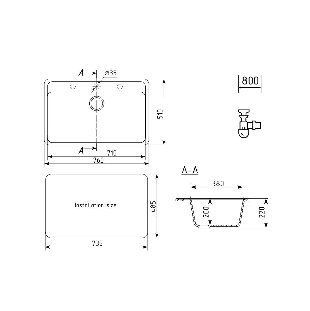 ULGRAN U-600 - односекционная профессиональная кухонная мойка с большой чашей и отверстием под смеситель. Данная мойка устанавливается в шкаф шириной от 80 см. В комплектацию входит сливная арматура с гофротрубой, технический паспорт и гарантийный талон. Существует возможность установки дозатора ULGRAN или других аксессуаров - доп. отверстие в таком случае потребитель делает самостоятельно с помощью фрезы Форстнера (не входит в комплектацию и приобретается отдельно). Заводская гарантия составляет 4 года, а срок службы данной мойки, при соблюдении основных правил ухода за ней, составляет более 10 лет.
