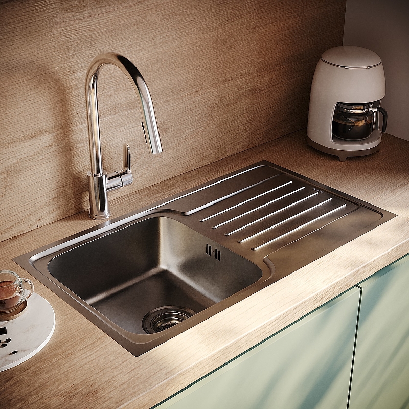 • Имеет текстуру с эффектом шелковой поверхности благодаря специальной обработке стали. Это придает мойке современный технологичный вид.