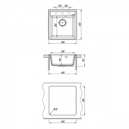 Кухонная мойка Lemark HANKA 450 врезная прямоугольная из кварцгранита цвет: Серый шёлк (9910011)